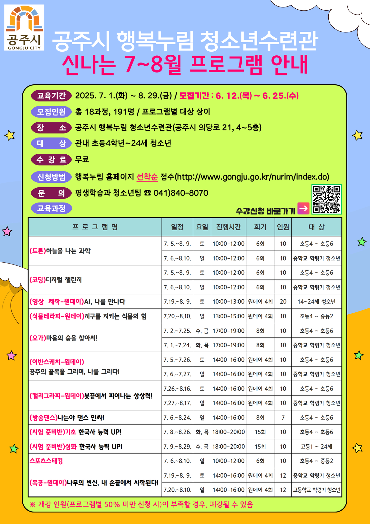 접수기간 2025-06-29 09:00 ~ 2025-07-20 18:00 지역 공주시전체